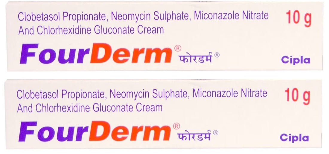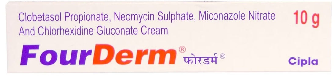 FourDerm Cream Clobetasol, Neomycin, Miconazole & Chlorhexidine • 4-Way Action FourDerm Cream is an...