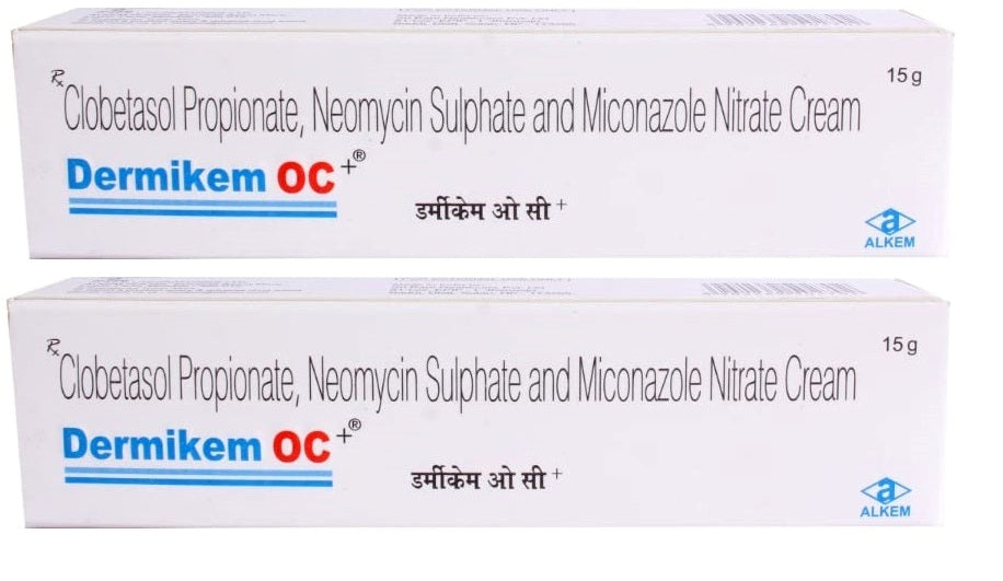 Dermikem OC Plus Cream 15g Pack of 2 | Clobetasol, Neomycin & Miconazole | Skin Infection Treatment